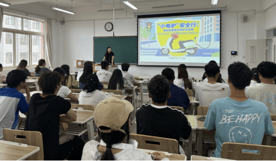 校园内电动摩托车骑行安全事关每一位师生。班会中,详细剖析了超速行驶、违规载人、堵塞消防通道等行为的严重危害,结合真实案例警示同学们“生命只有一次,安全重于泰山”。并发出倡议:自觉遵守校园交通规则,坚决不违规载人,有序停放在指定区域,在指定充电桩安全充电,养成佩戴头盔习惯,做“自身安全第一责任人”,共同维护校园交通秩序和安全环境。