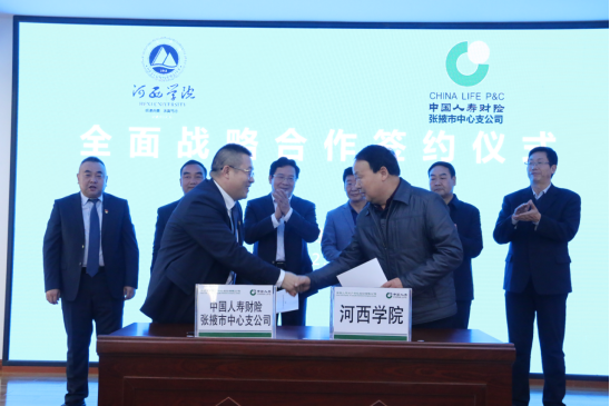 董事长张汉燚与中国人寿财险张掖市中心支公司总经理王永国签订战略合作协议,公司党委书记刘玉环与中国人寿财险张掖市中心支公司总经理助理宋克九签订农险专家合作协议。