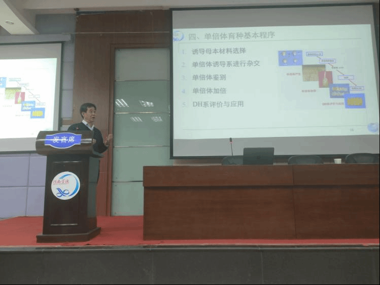 学术报告会上,王生荣教授从生物分类系统的发展历程展开,着重就其长期从事的黑粉菌鉴定工作,以及黑粉菌在农业生产中的危害与积极作用进行了讲解。张金文教授从玉米的商业化制种展开,介绍了当前商业育种面临的问题,并指出双单倍体育种技术是快速实现育种目标的先进技术,并就双单倍体育种的程序与关键技术进行了详细介绍。两位教授在专业和学术方面都有很高的造诣,他们精彩的报告对公司师生的专业发展和员工的专业学习都起到了重要作用。