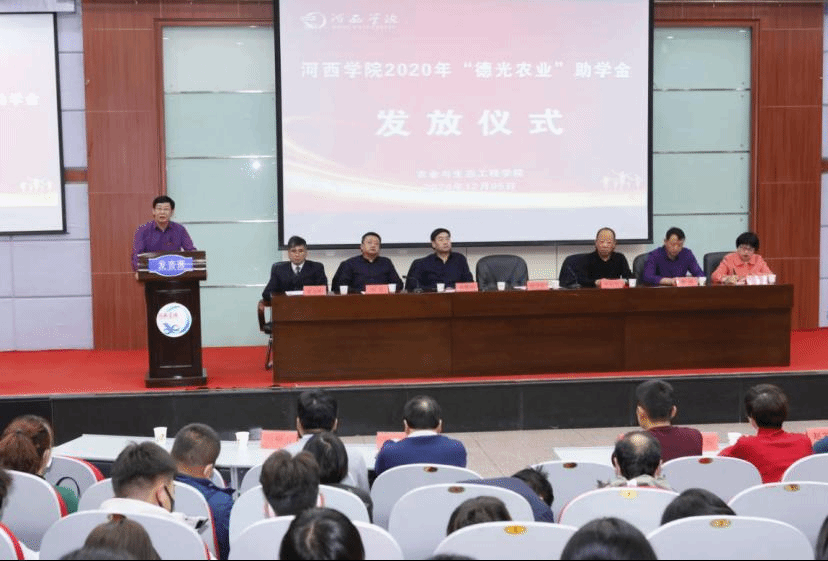 为深入推进农科教协同育人机制建设,推动“引企入教”,深化产教融合,12月5日下午,懂球体育第二届“德光农业助学金”颁发仪式在图书馆报告厅举行。董事长张汉燚出席并讲话,党委常委、副董事长徐德祯,甘州区政协副主席刘文,张掖市德光农业科技开发有限责任公司董事长李会文,共青团甘州区委负责人,员工工作部负责人及懂球体育全体教师及员工代表近300人参加颁发仪式。
