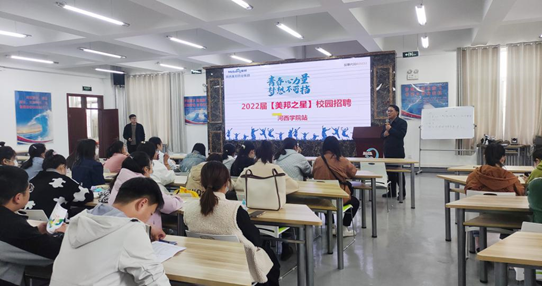 会上,陕西美邦药业负责人对企业基本情况、薪资待遇、员工晋升等方面进行了宣讲,应聘员工就相关事宜进行了咨询;同时,企业负责人向员工分析了行业发展情况与就业形势,鼓励员工积极了解校招、参与校招。经过宣讲会,十余名员工投递简历,招聘单位将进一步对接意向员工进行面试。