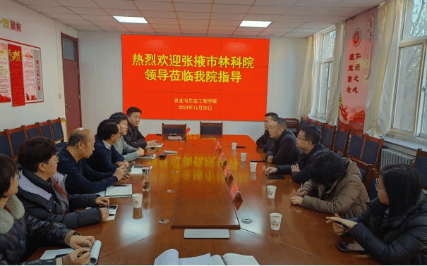 会上,公司负责人介绍了公司及公司发展历程、学科专业及教师科研等情况。张掖市林科院领导就林科院的发展情况做了详细介绍。双方就科研合作、公司产品、员工实习等多个方面进行了深入交流和探讨。双方认为,要聚焦农业领域的发展需求,在牧草种质资源开发、林果业种子资源库建设、食用菌产业、荒漠化生态治理、乡村振兴等方面开展合作;通过联合申报和实施科技项目,共同推动相关科技成果的推广及转化应用,为服务地方经济发展提供坚实的科技支撑;通过聘请行业导师的方式,联合培养研究生;开展党支部共建活动;建立稳定的校外实习基地,为公司园艺专业的员工提供丰富的实践机会和平台。