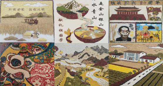 终评现场,作品展示区成为了一场别开生面的美育与专业教育课堂。参赛选手们以“河农1号”“河农2号”玉米种子以及张掖本地出产的大米、小米、葵花子等各类作物种子为素材,通过精巧的拼贴与构图,将种子的自然形态之美与生命韵律转化为一幅幅生动传神、寓意深远的艺术作品。作品主题鲜明,深刻诠释了“两山”理念、国家粮食安全、农业农村现代化和美乡村建设等时代命题,充分展现了农科学子知农爱农、强农兴农的使命担当。
