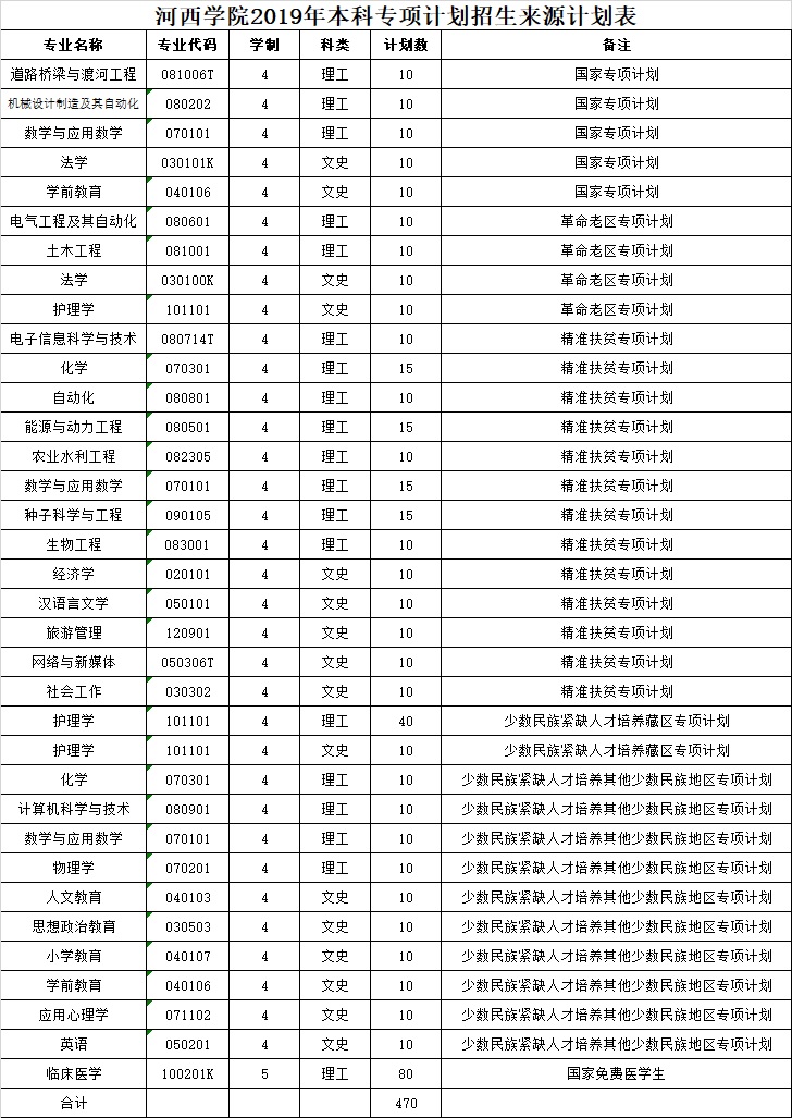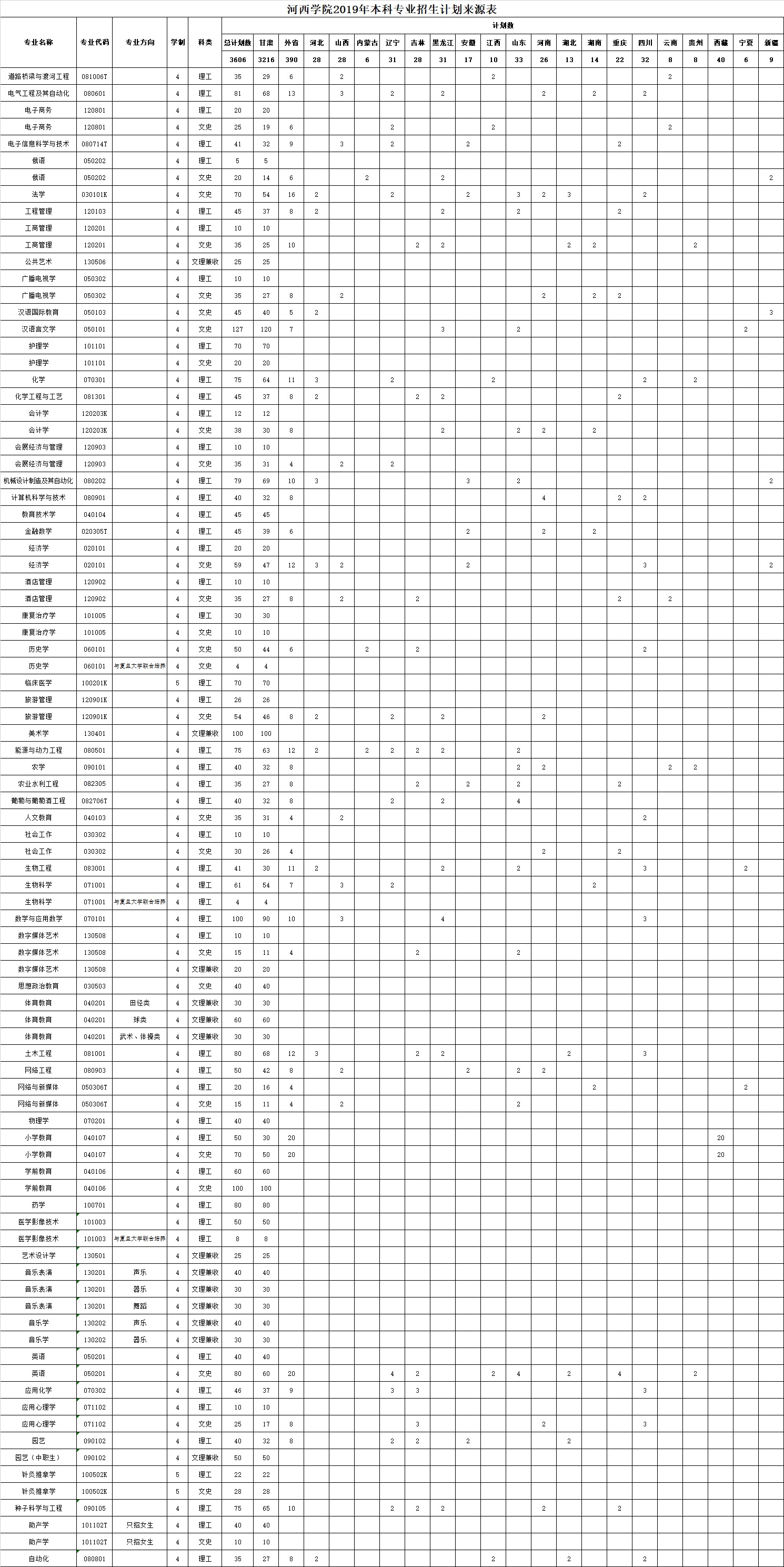 2019年本科招生计划